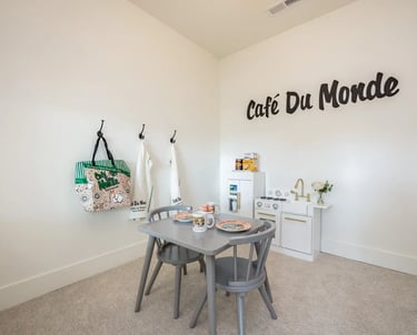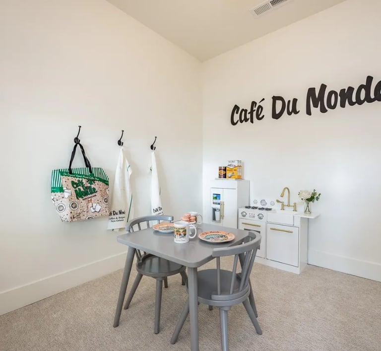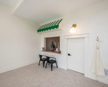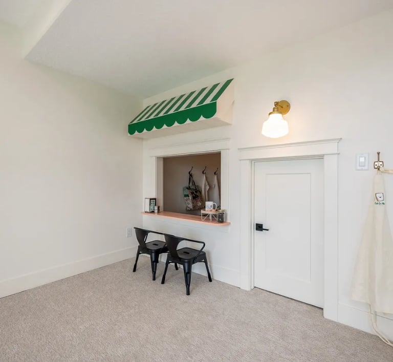 Custom built in child play house in basement.