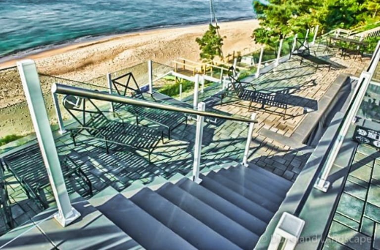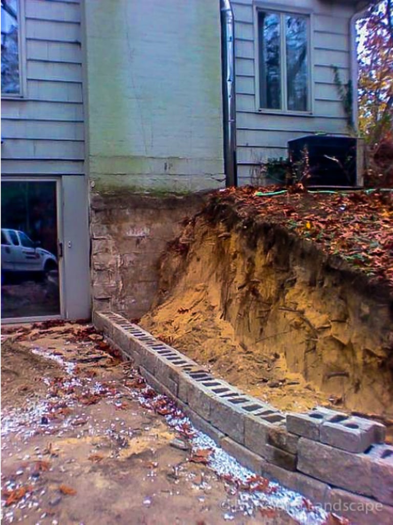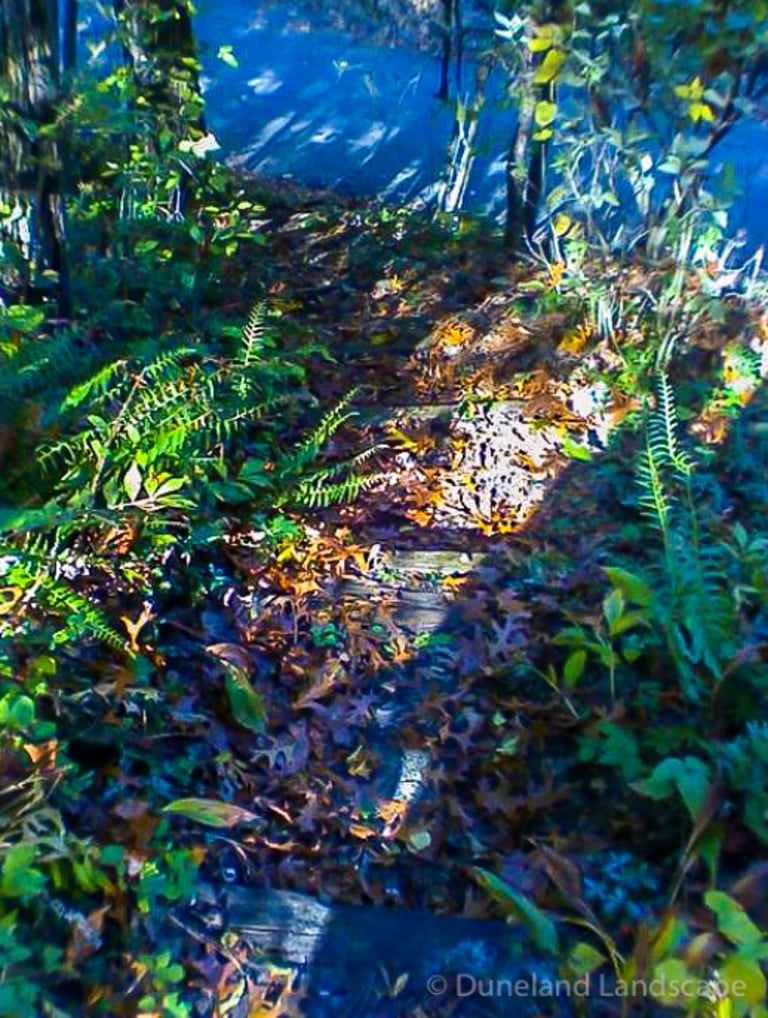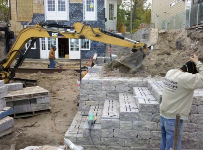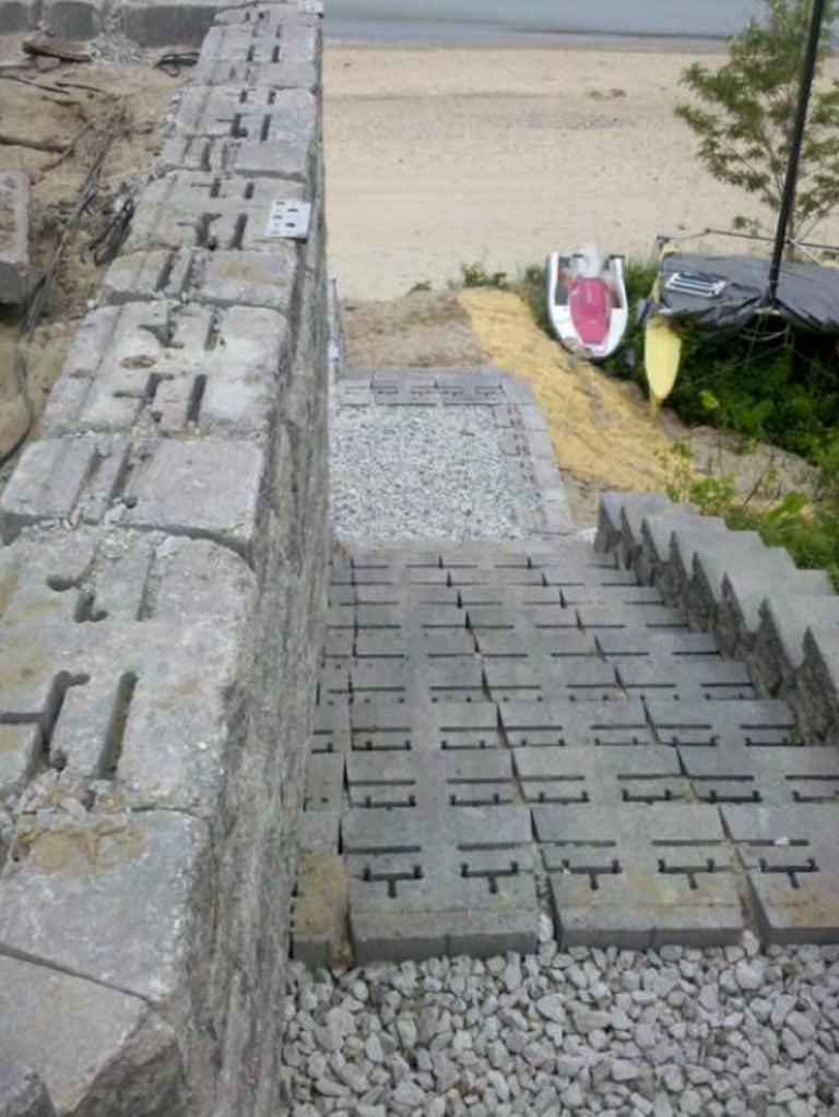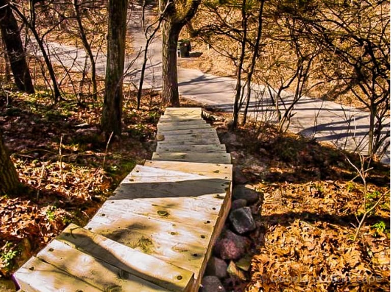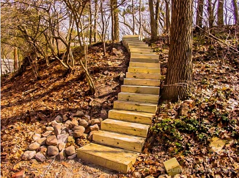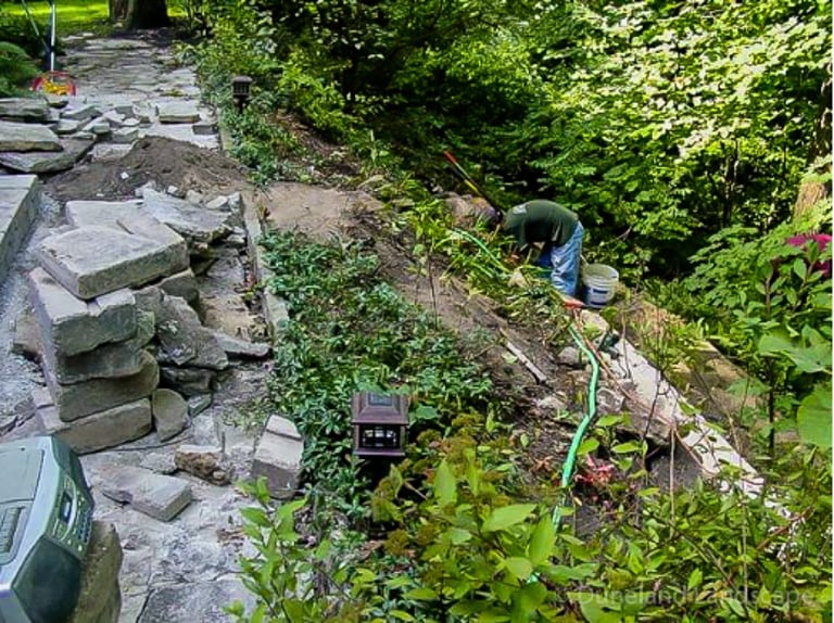 Flagstone Hardscape Project with Retainer wall and Natural Wood Stairs